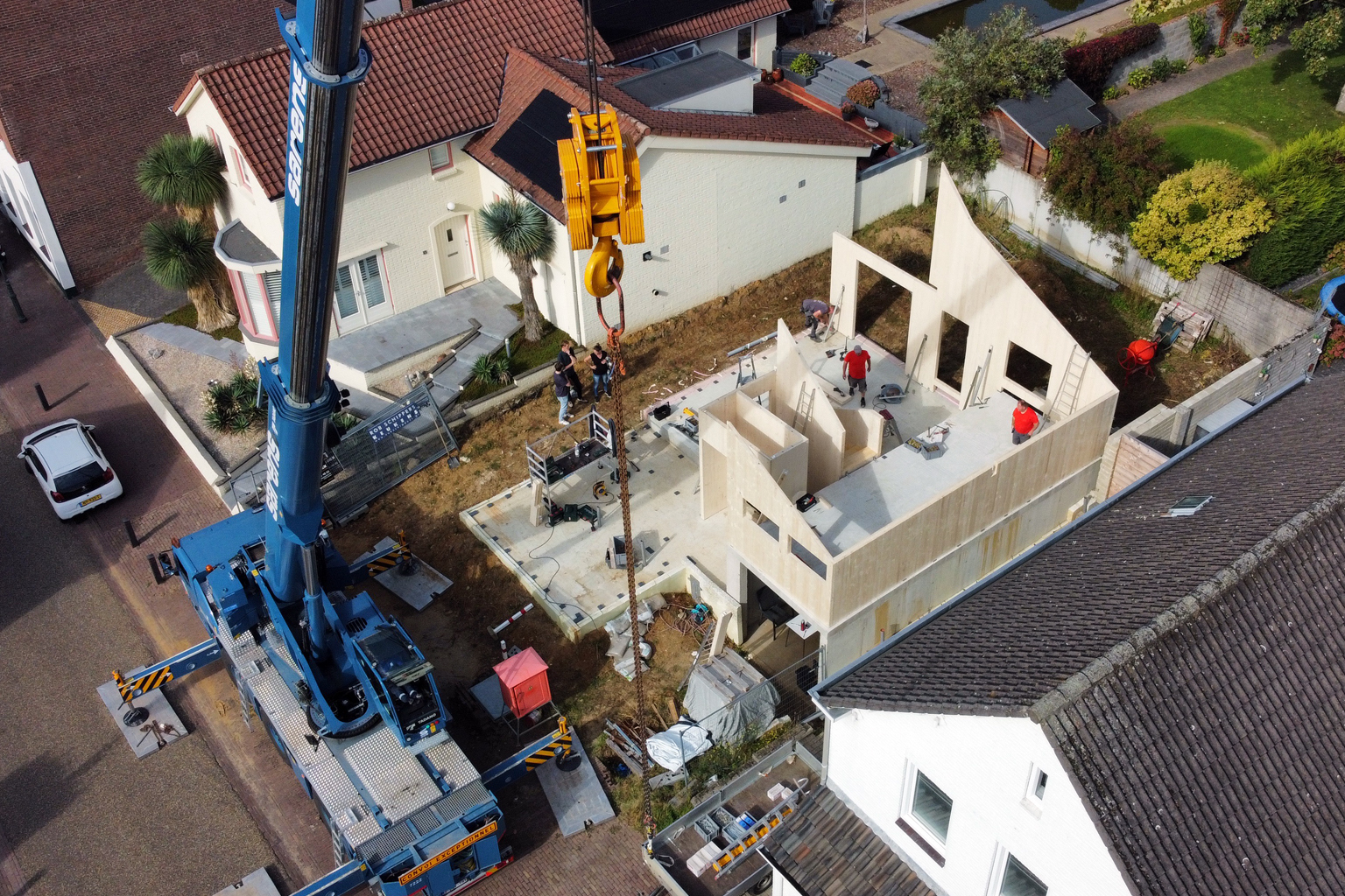 De keuze voor CLT-bouw (Cross Laminated Timber) was hierin cruciaal. Dit volledig houten bouwsysteem maakte het mogelijk het uiterste te vragen van een duurzaam constructief product: slank, sterk, circulair en met een warme, natuurlijke uitstraling. CLT bood niet alleen constructieve vrijheid, maar ook de mogelijkheid om architectuur, constructie en afwerking integraal te benaderen. Door alles in de voorfase zorgvuldig te engineeren, heeft Wehrung Architecten het casco tot in detail voorbereid. Hierdoor kon de volledige houten ruwbouw binnen één week worden geplaatst en afgemonteerd. Een krachtig bewijs van precisie, efficiëntie en toekomstgericht bouwen. De woning is opgezet vanuit een uitgesproken minimalistische leefstijl. Materialisatie, detaillering en ruimtelijke opbouw zijn teruggebracht tot de essentie, waarbij het hout zichtbaar en voelbaar blijft. Dit zorgt voor rust, continuïteit en een directe relatie tussen constructie en beleving. Deze woning laat zien hoe innovatieve houtbouw, zelfs op de meest beperkte plek, kan leiden tot een hoogwaardig, duurzaam en bijzonder woonconcept.